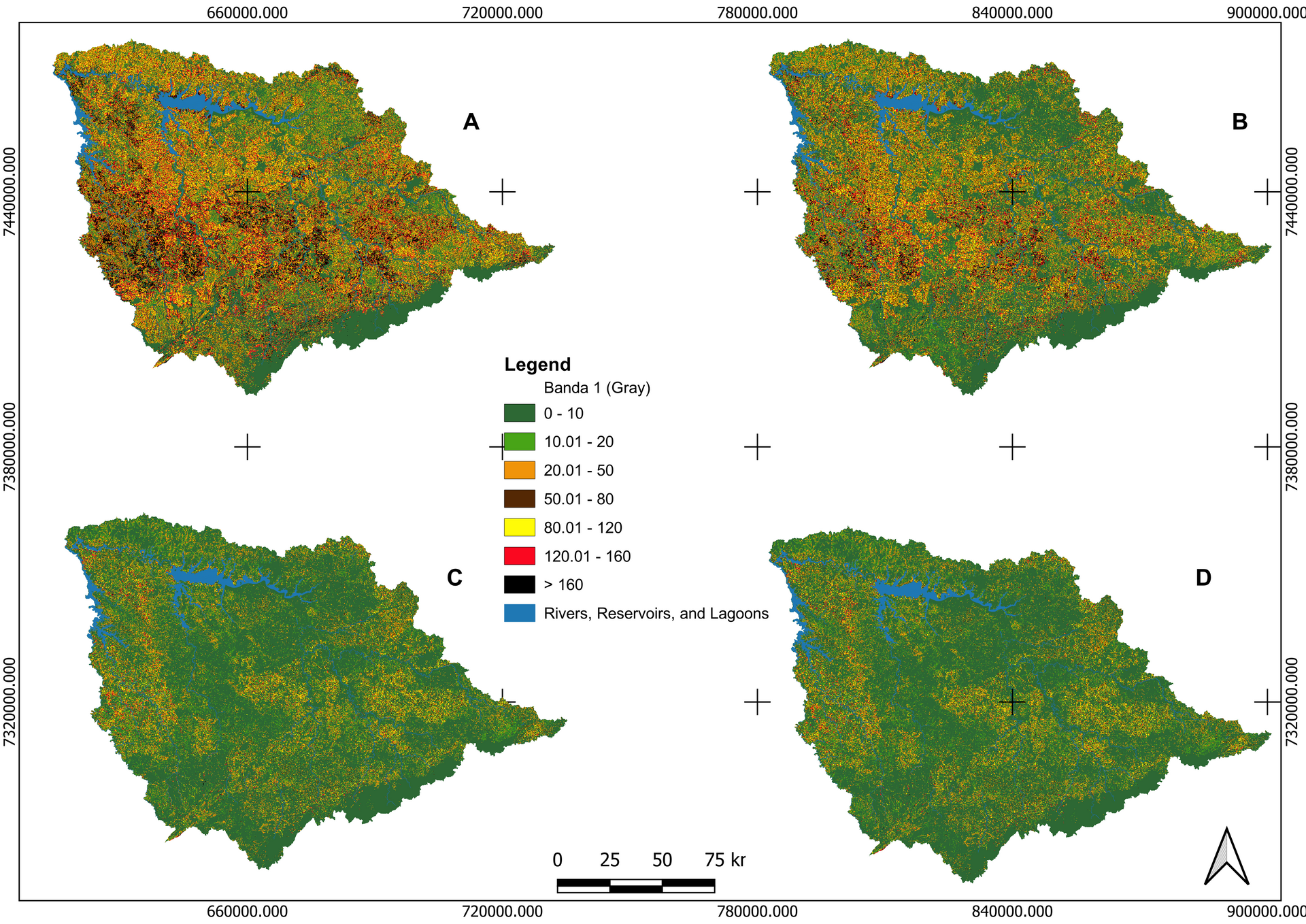 This reflects long-term land use change and uneven conservation outcomes across municipalities, resulting in extremes of preservation and degradation within the same basin.